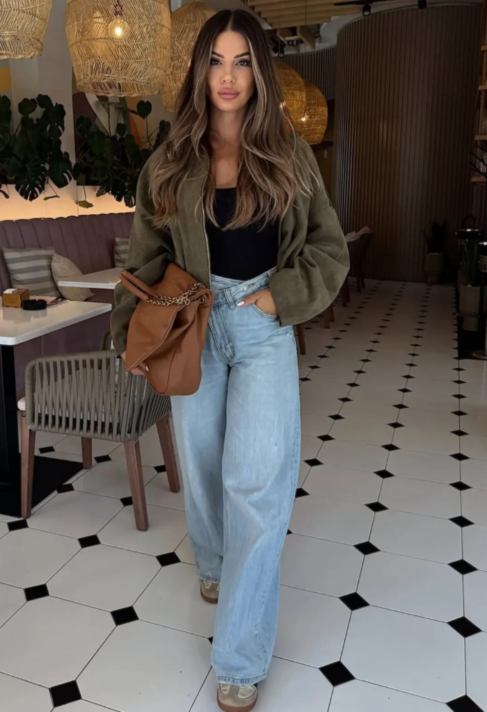 Realizată din material tip suede cu textură catifelată, această jachetă oversized în nuanță khaki-olive adaugă instant un aer cool și elegant oricărei ținute. Croiala lejeră și versatilă o face ideală pentru a fi purtată atât cu jeanși casual, cât și cu rochii sau pantaloni eleganți, în funcție de stilul pe care vrei să îl transmiți.