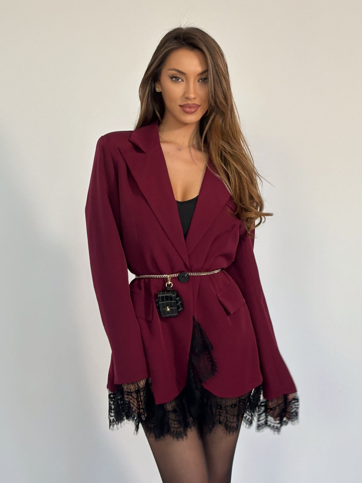 Transformă orice apariție într-o declarație de stil cu Sacoul Tip Rochie Laila, piesa care îmbină rafinamentul unui sacou clasic cu feminitatea unei rochii scurte. Un design premium, realizat pentru femeia modernă, sofisticată și încrezătoare.