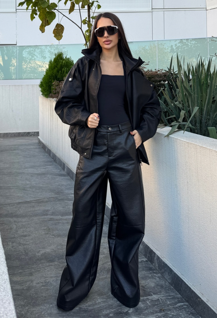 Realizați din piele eco de înaltă calitate, acești pantaloni au o croială wide leg spectaculoasă care alungește silueta și oferă un aer modern și sofisticat. Textura moale, dar fermă a pielii eco conturează perfect formele, oferind confort și libertate de mișcare.