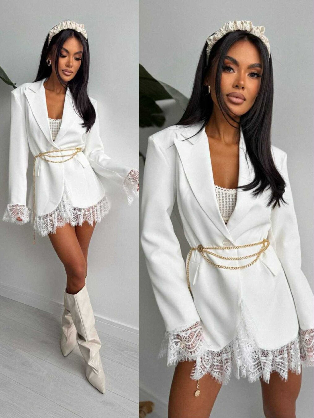 Transformă orice apariție într-o declarație de stil cu Sacoul Tip Rochie Laila, piesa care îmbină rafinamentul unui sacou clasic cu feminitatea unei rochii scurte. Un design premium, realizat pentru femeia modernă, sofisticată și încrezătoare.