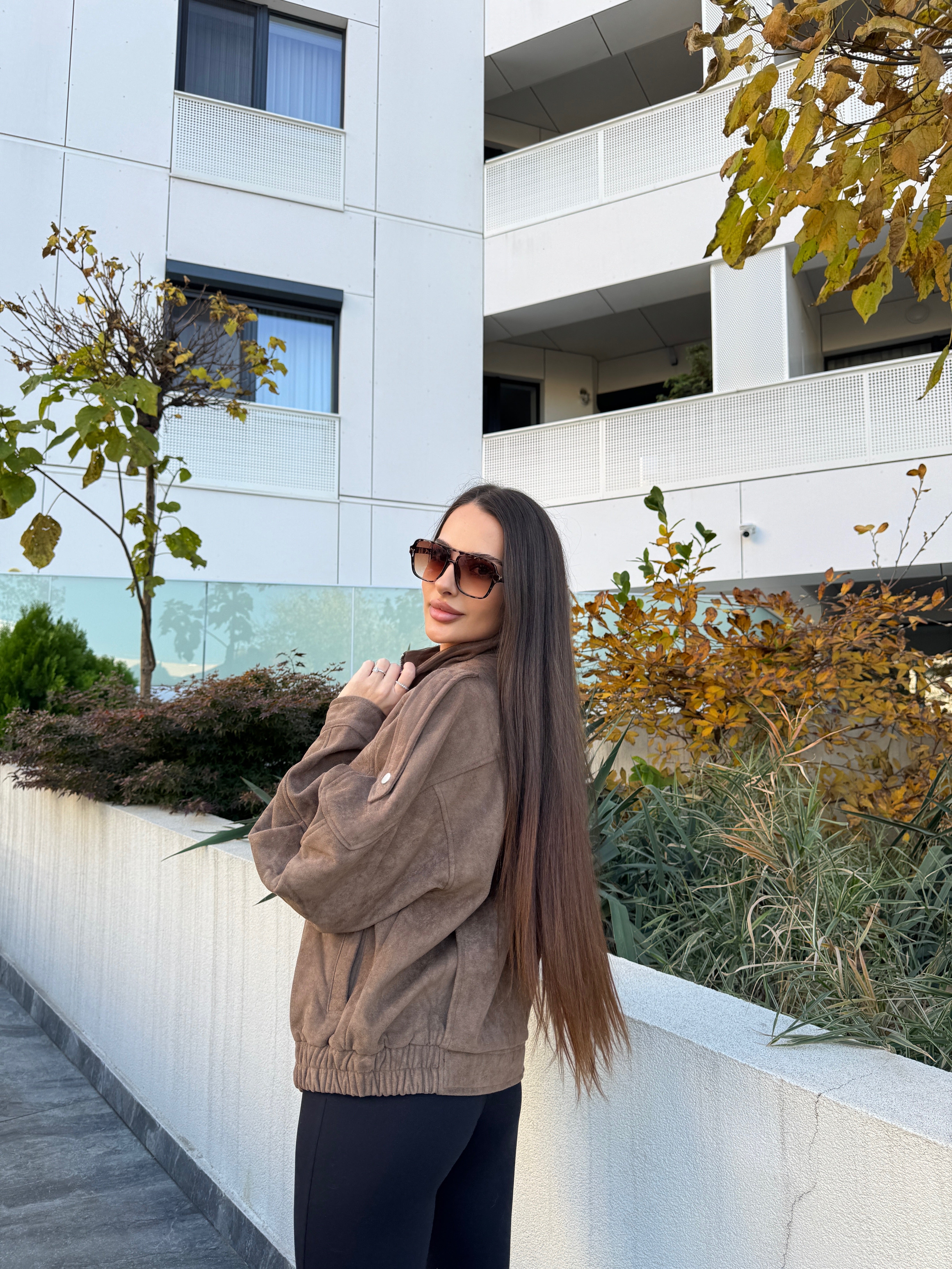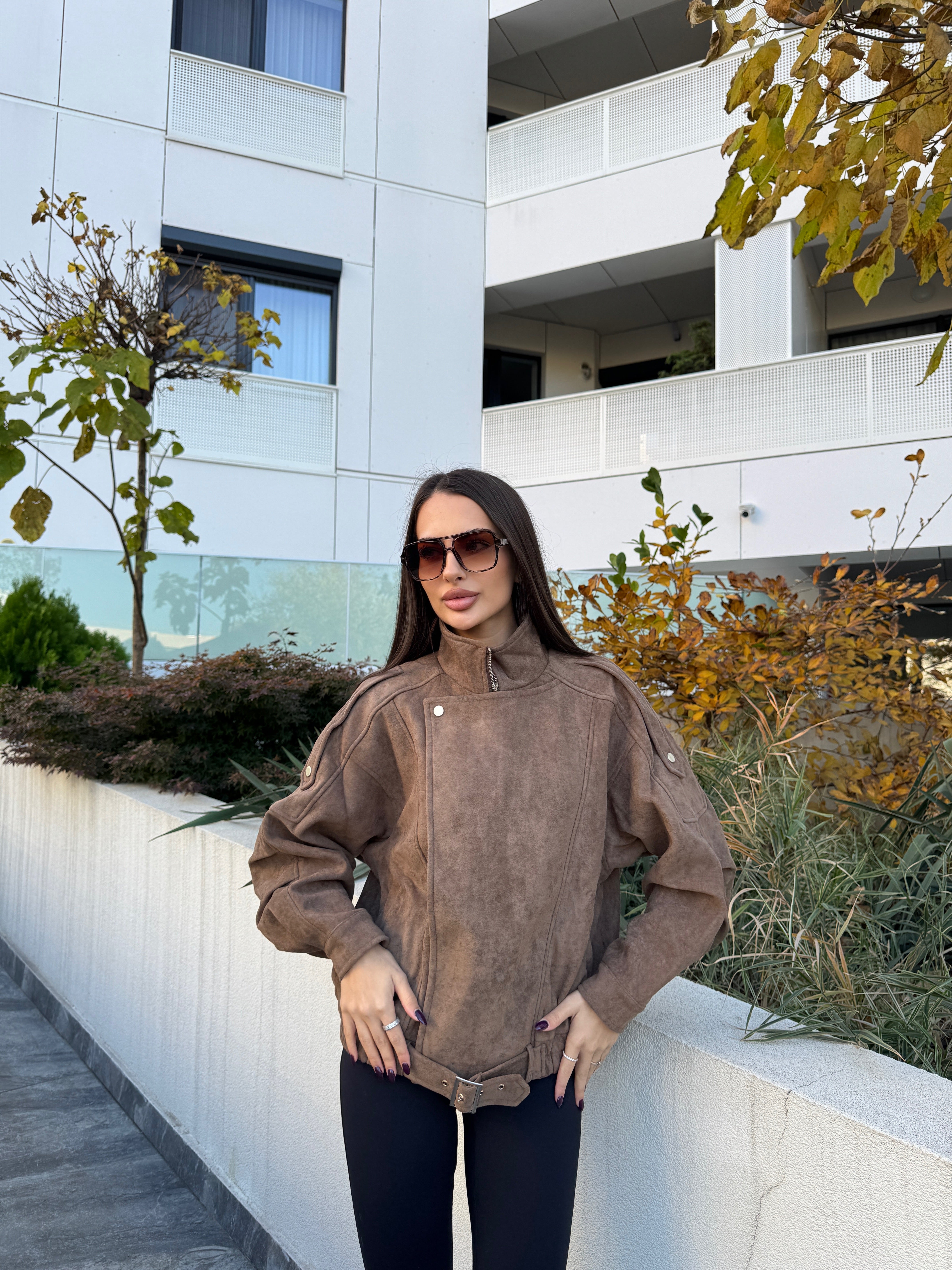 Jacheta Milan Mocha este definiția rafinamentului urban combinat cu un aer relaxat și sofisticat. Realizată din piele întoarsă ecologică premium, are o textură moale, catifelată și un croi oversized, ideal pentru layering și pentru un look modern, effortless.