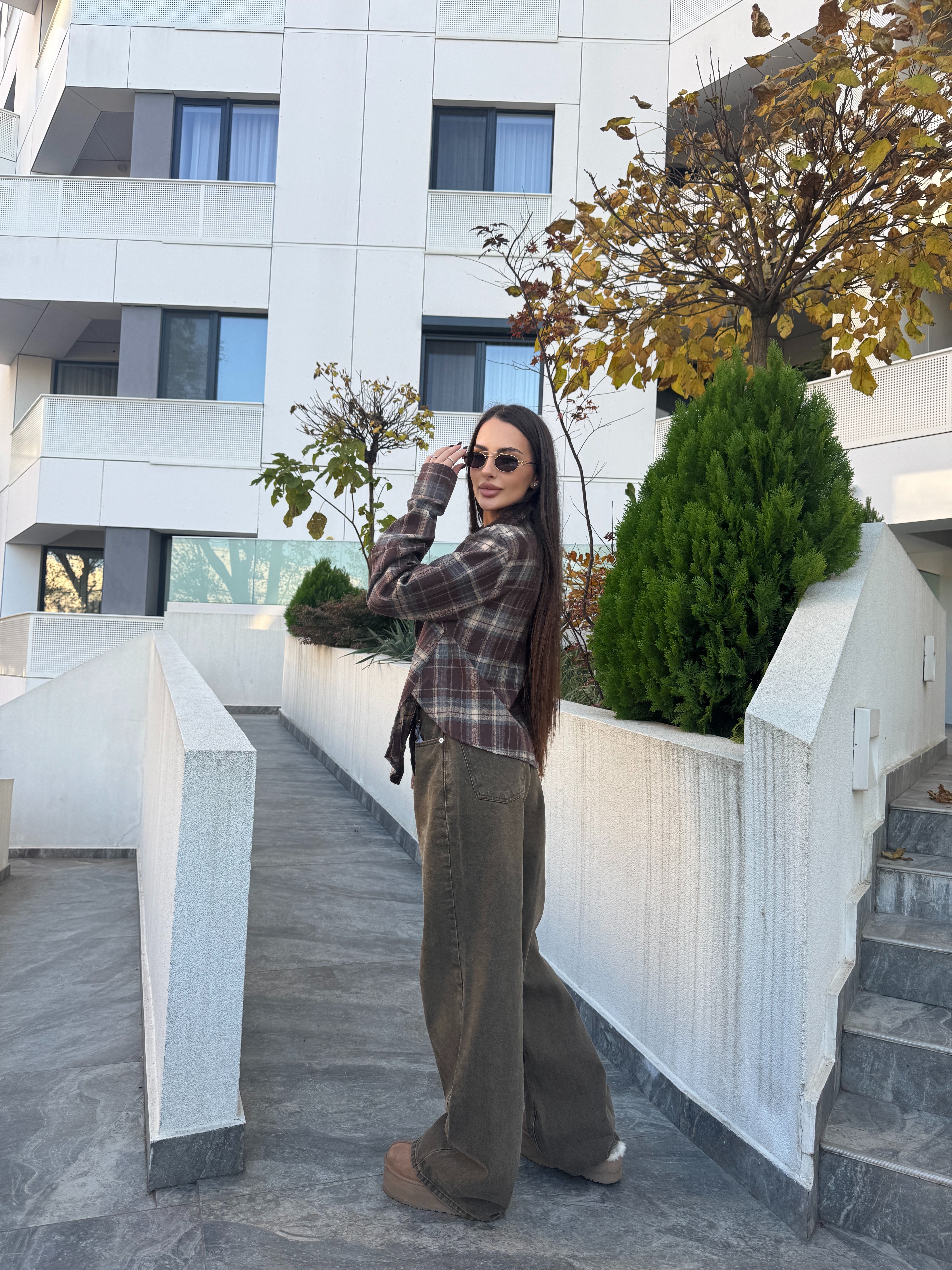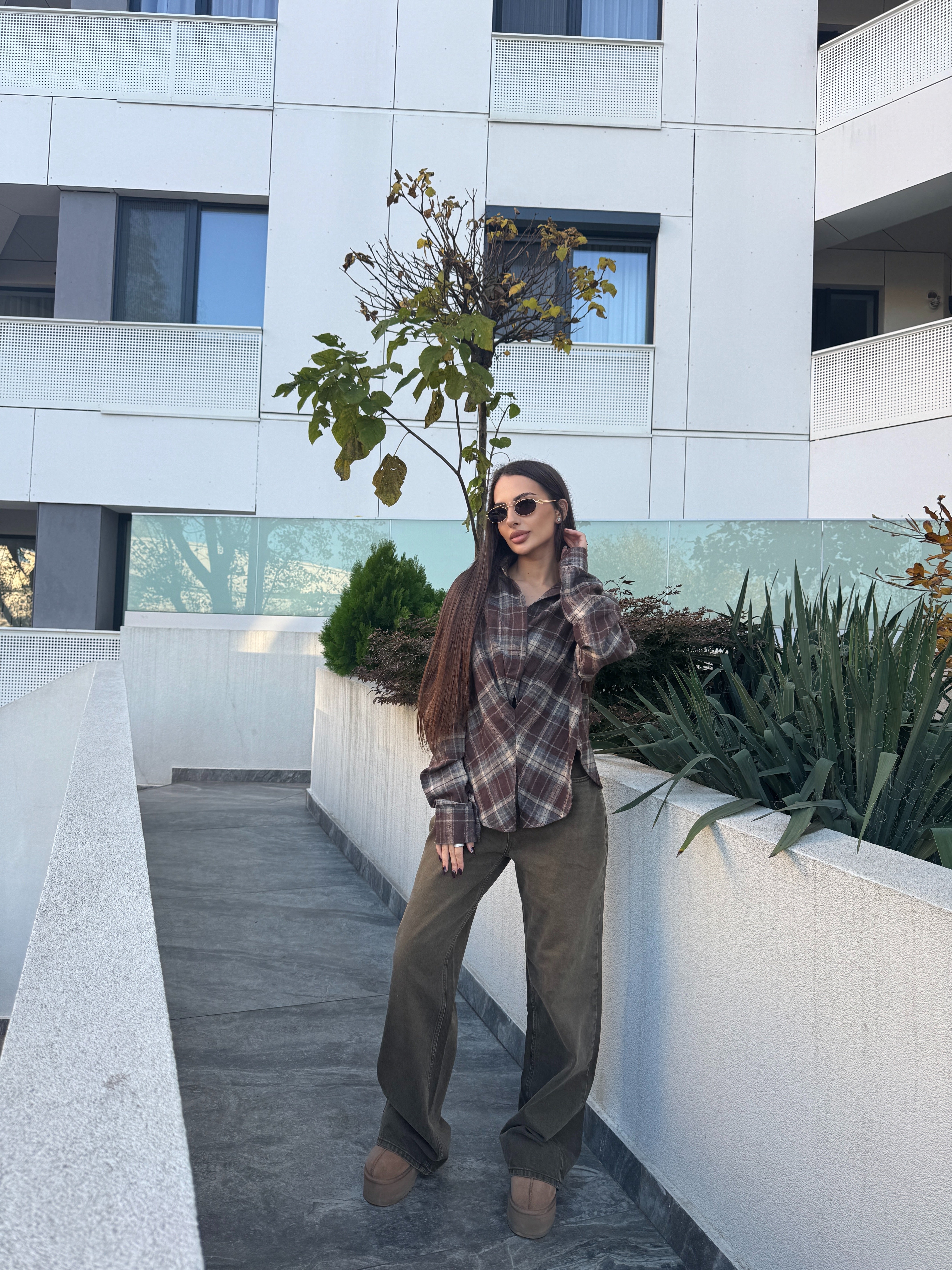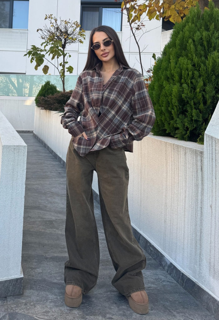 Adaugă un aer casual și sofisticat garderobei tale cu această cămașă în carouri, perfectă pentru ținutele de zi cu zi. Realizată dintr-un material confortabil și plăcut la atingere, cămașa îmbină nuanțe calde de maro și bej, oferind un look modern și ușor de integrat în orice outfit.