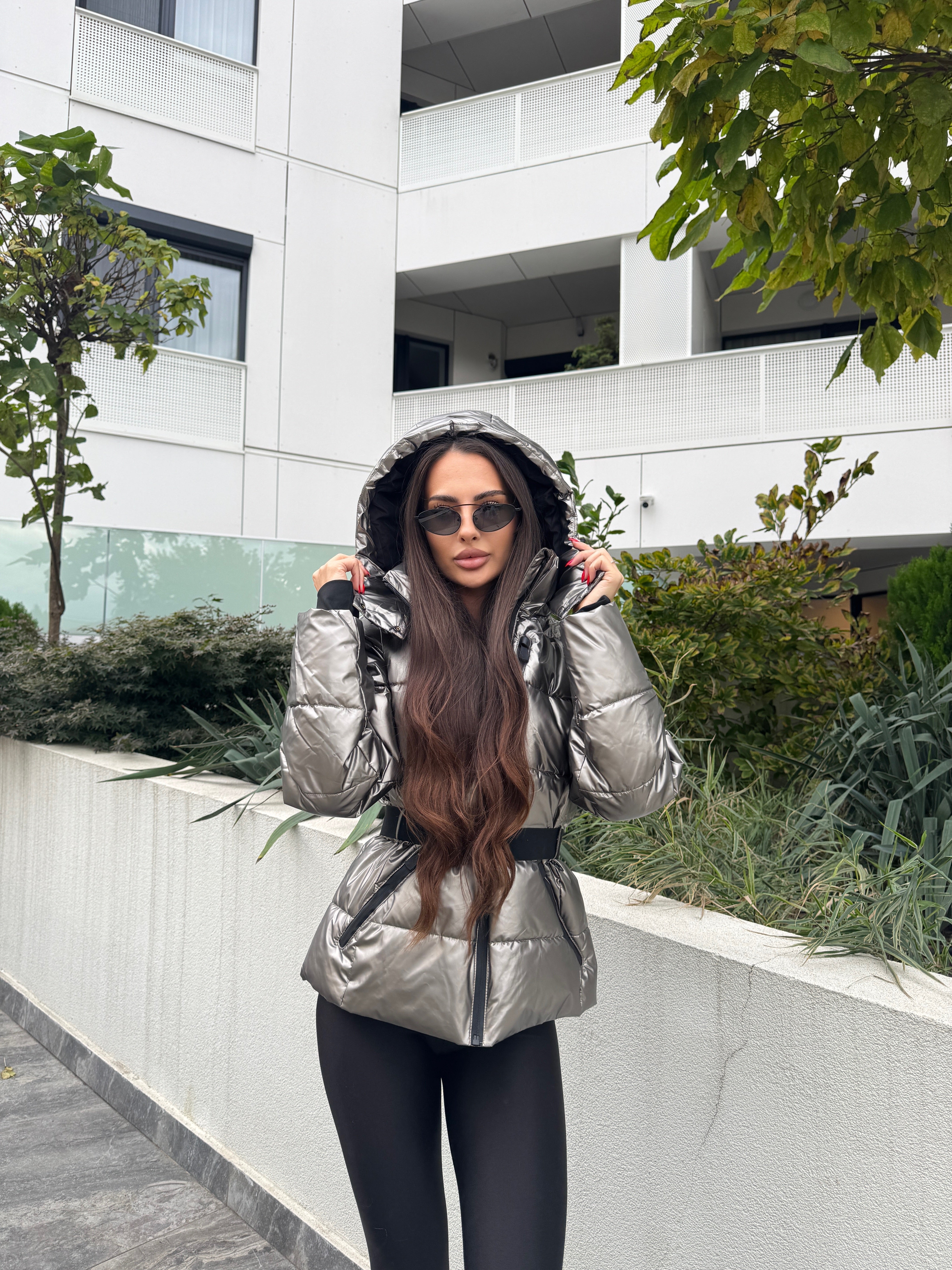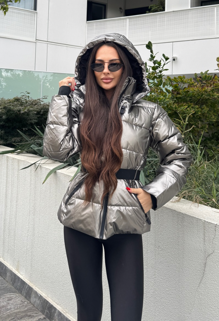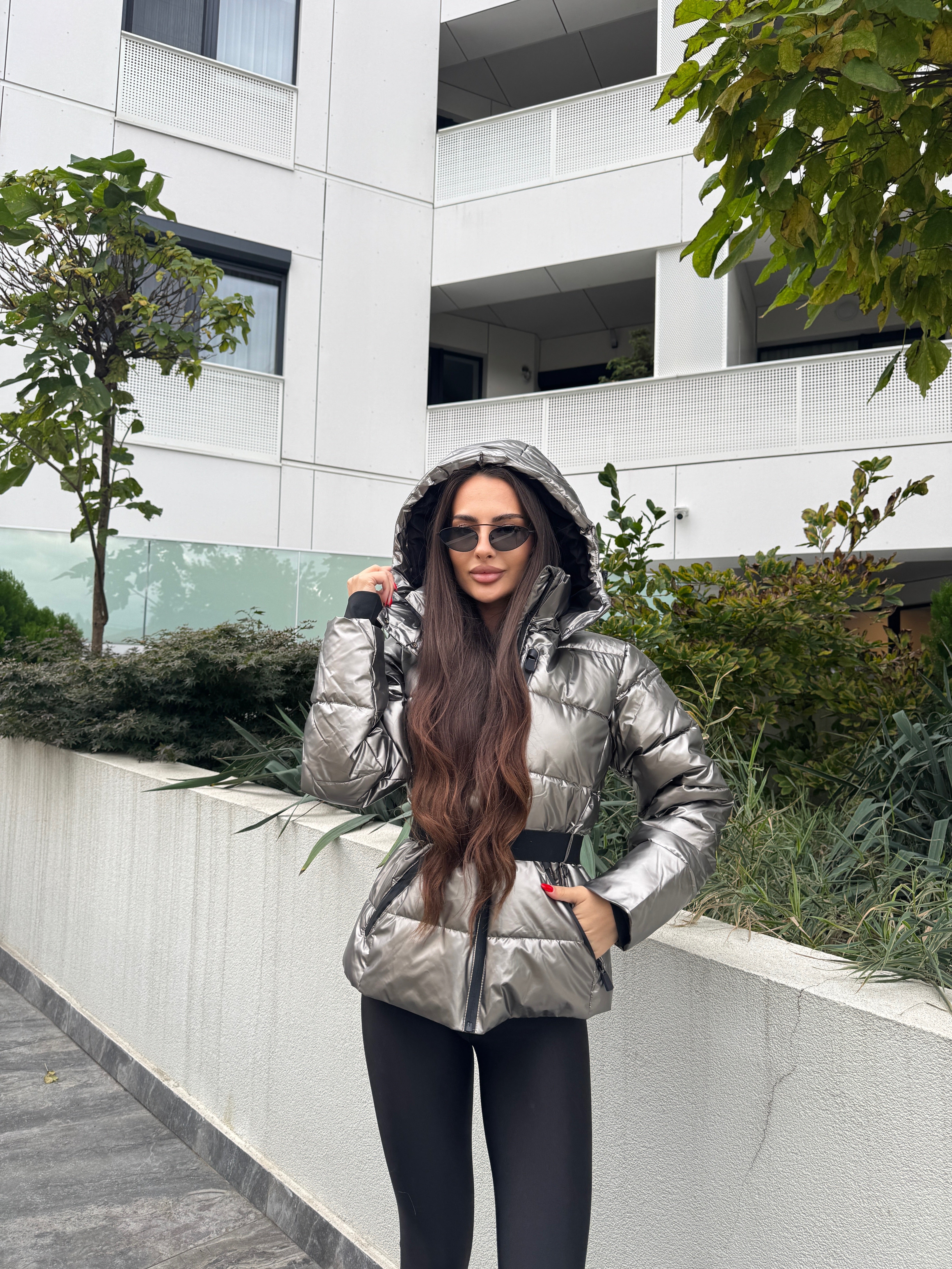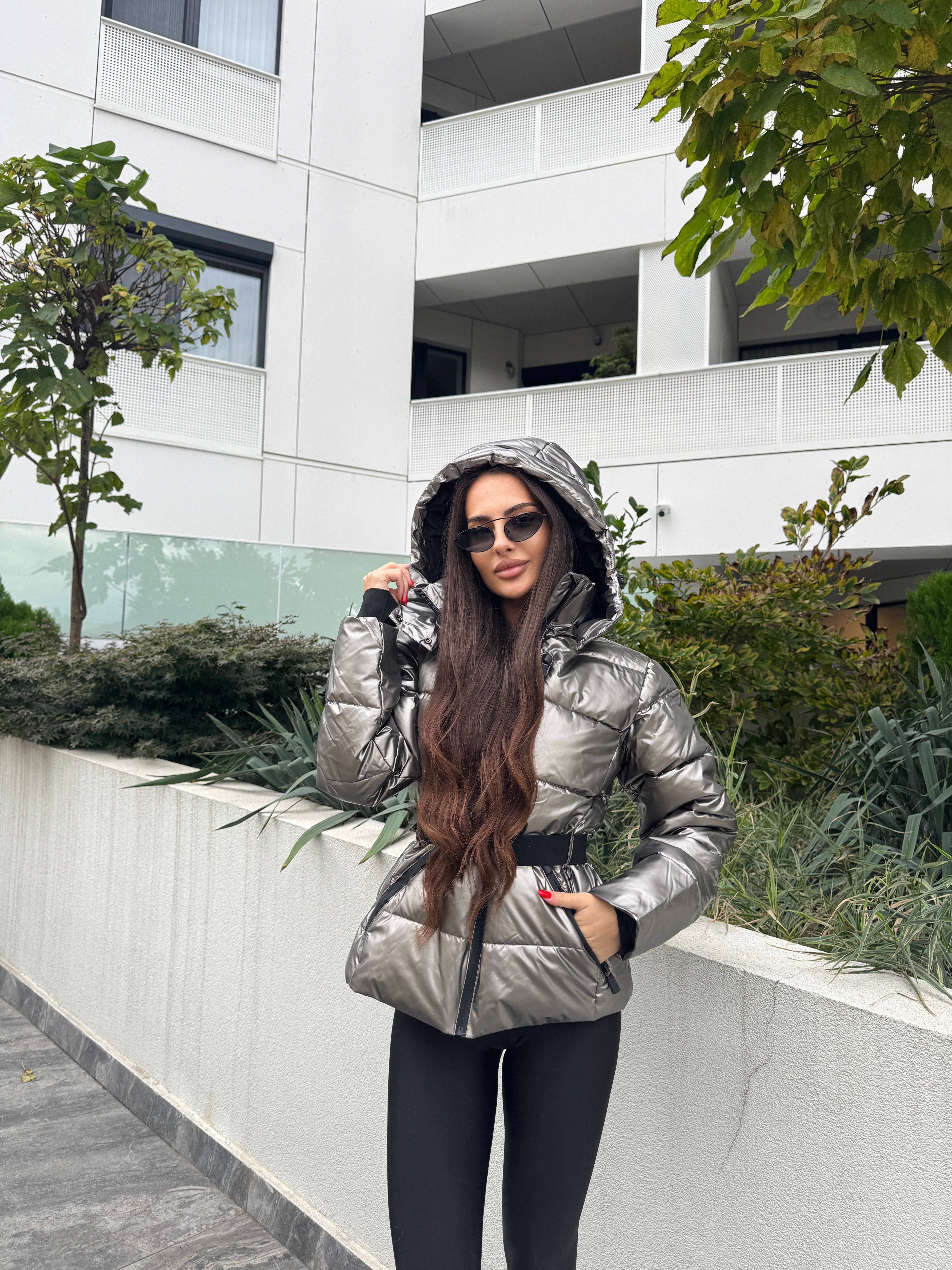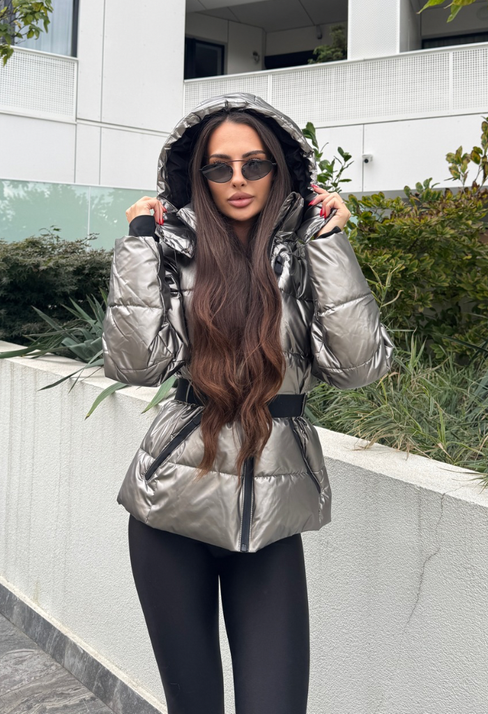 Jacheta Gavros îmbină perfect stilul urban cu eleganța modernă. Realizată din material matlasat , in nuanta de gri metalizat , oferă un look statement ideal pentru sezonul rece. Croiala cambrată și centura subliniază talia, punând în valoare silueta, în timp ce gluga adaugă un plus de confort și versatilitate.