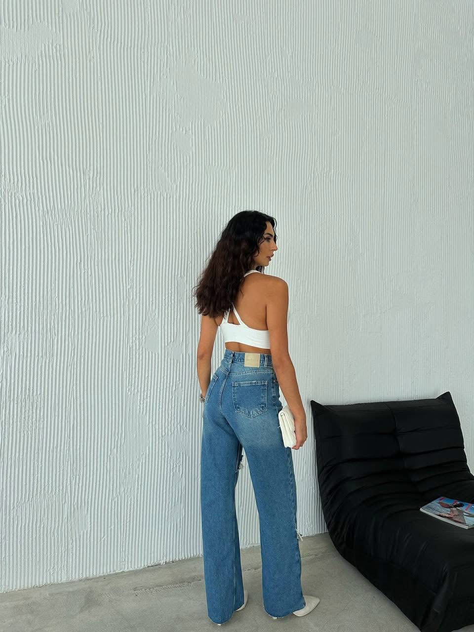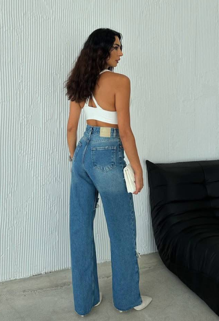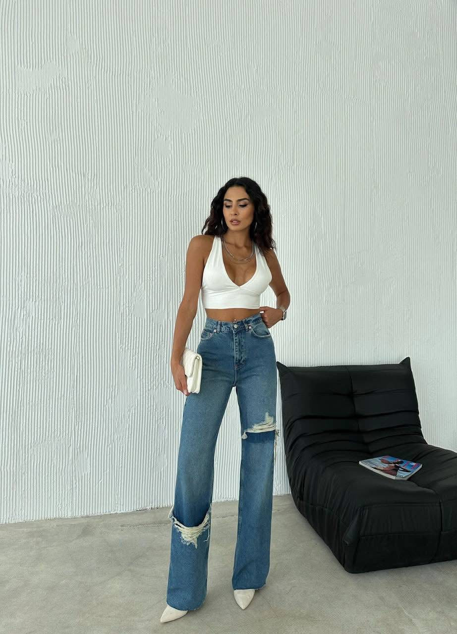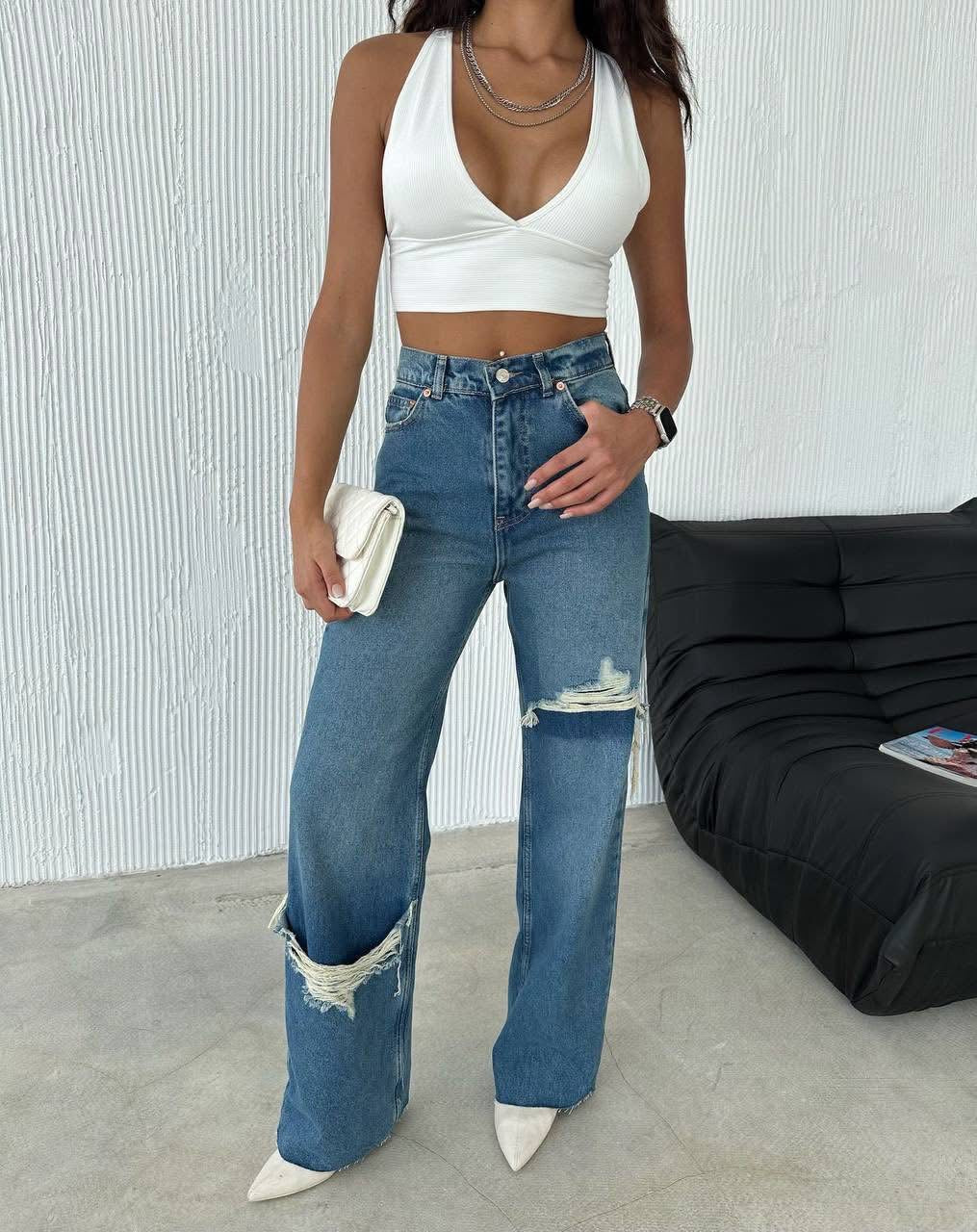 Modelul este evidențiat de detaliile distressed (rupturi stilizate) care adaugă un aer cool și actual, fiind alegerea ideală pentru outfituri casual sau streetwear. Materialul denim de calitate asigură rezistență și un fit impecabil.