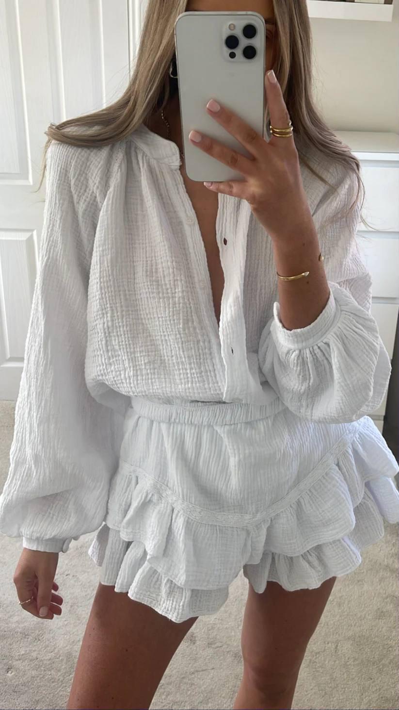 ROCHIE SCURTA ALB CU VOLANE LIVIA