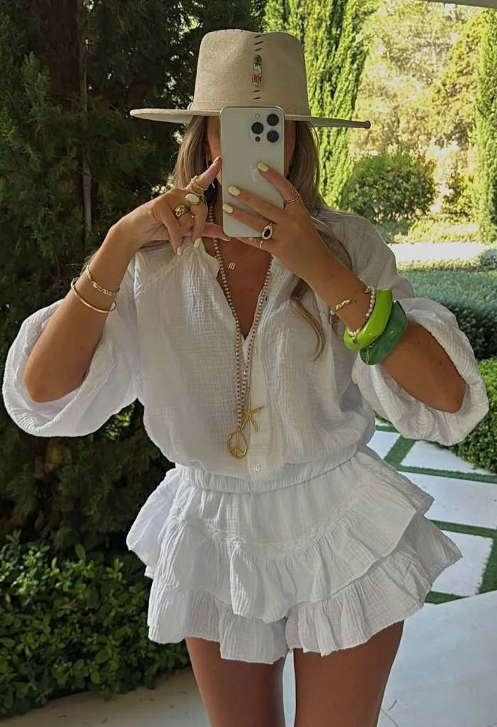 Nuanta alba adaugă un aer fresh și elegant, fiind ușor de asortat cu sandale, cizme de vară sau accesorii boho chic.